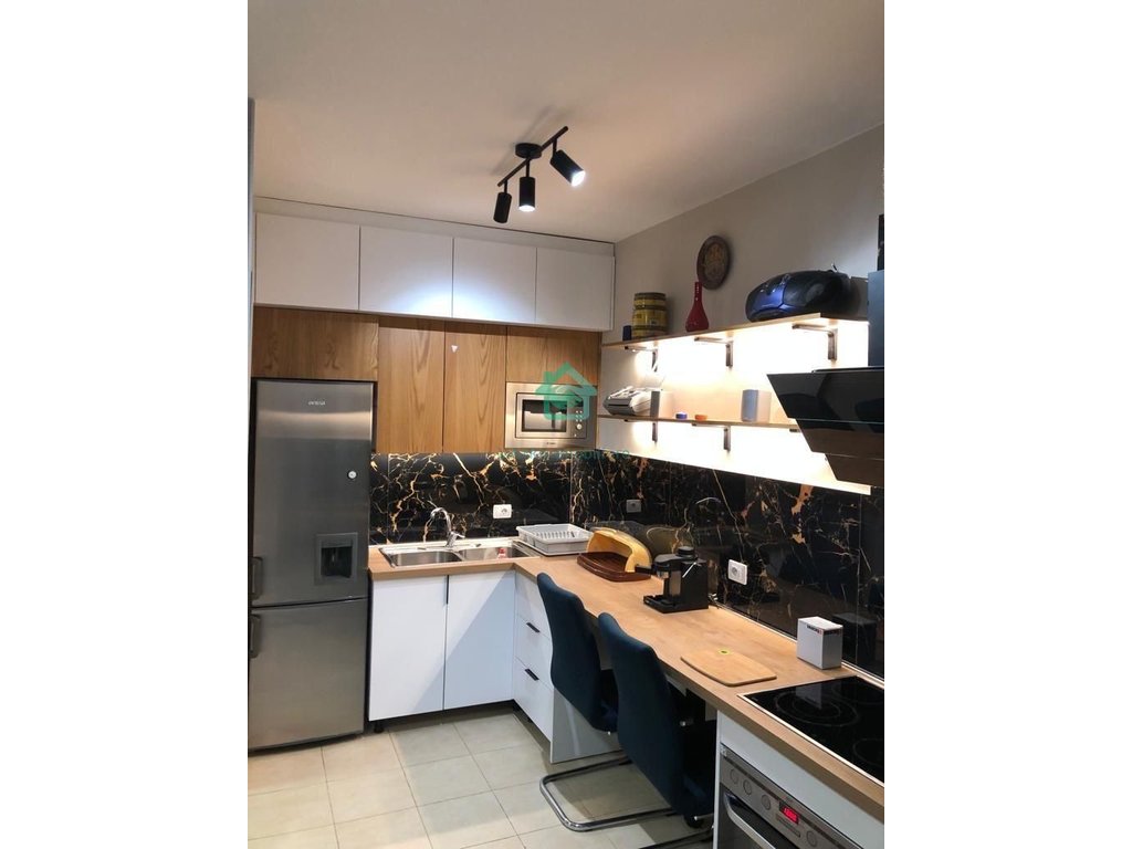 Ky apartament 1+1 ndodhet në katin e 5-të të një ndërtese 9-katëshe në zonën e Ish Fushës së Aviacionit, Tiranë, dhe është në shitje me një çmim prej 120,000€.
